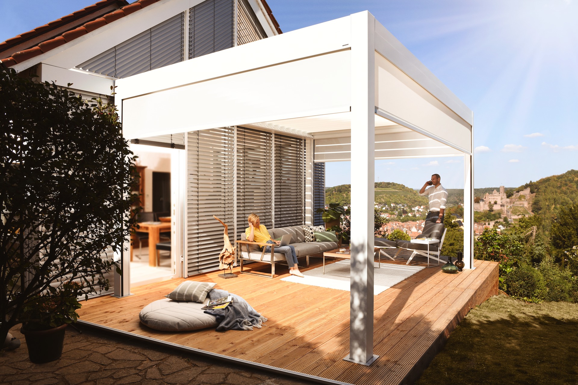 Wenn Ihr Lamellendach in Siegen nicht den Blick in den Himmel verstellen soll, empfehlen wir das Modell Lamaxa L70, bei dem Sie die Lamellen auf Knopfdruck nicht nur drehen, sondern auch seitlich verfahren können. So schaffen Sie sich unter diesem Lamellendach in Siegen einen persönlichen Wohlfühlplatz im Freien, den Sie bei jedem Wetter nutzen können.